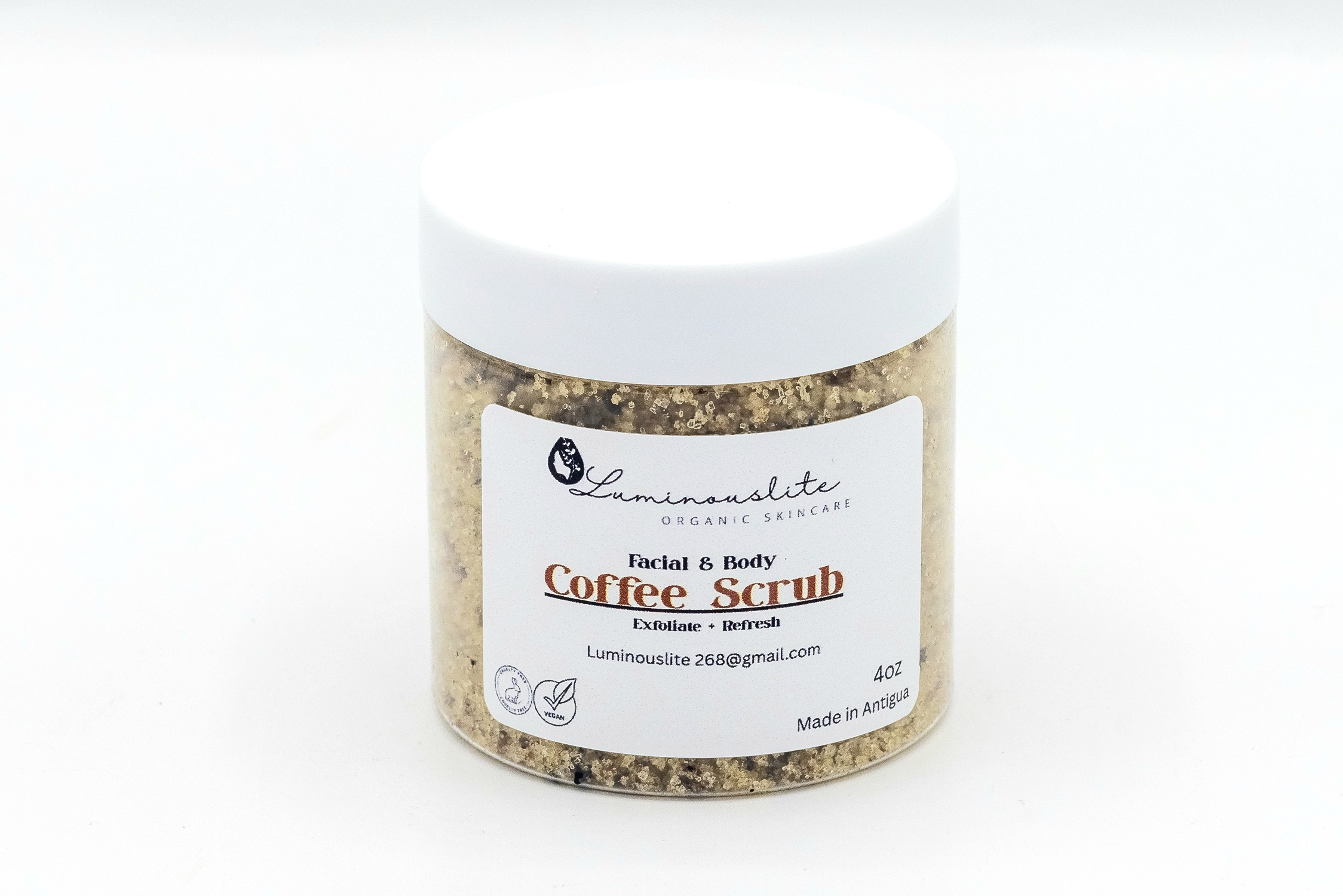 All natural Coffee scrub, made with real coffee for radiant exfoliation.